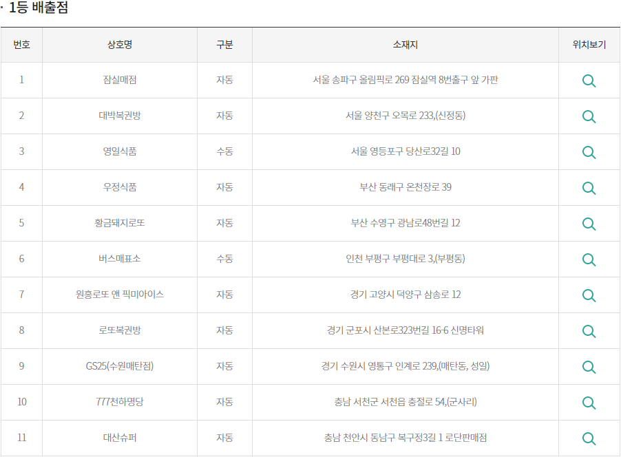 이번주 937회 로또 1등 당첨 배출점입니다.