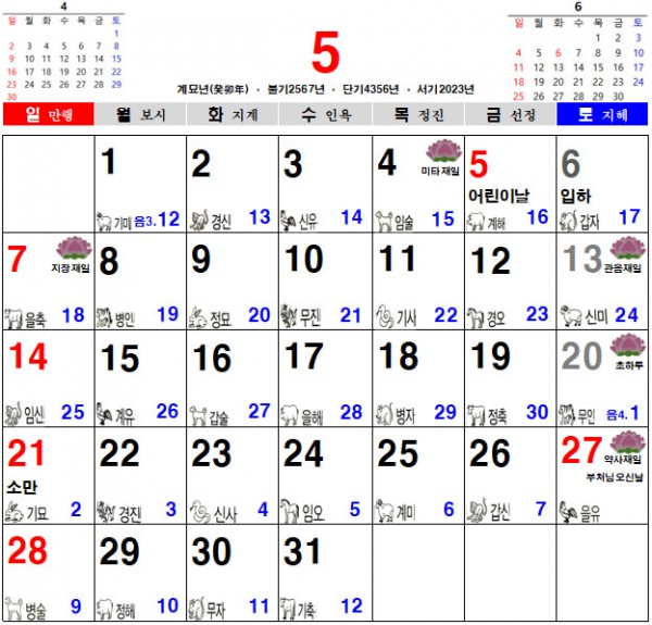 2023년 5월달 음력(불교)달력 다운받기