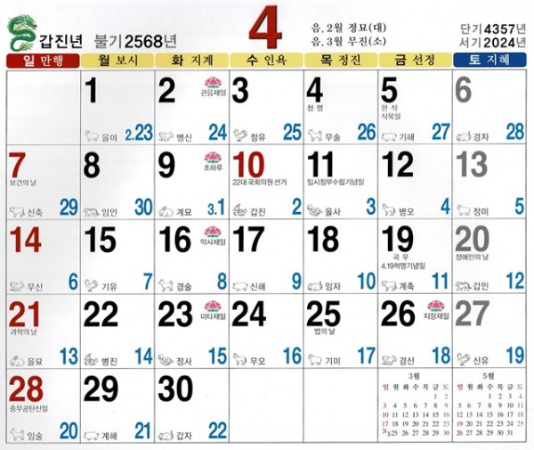 2024년 벌써 한분기가 지나갔습니다. 4월 음력달력을 포스팅 해보겠습니다.